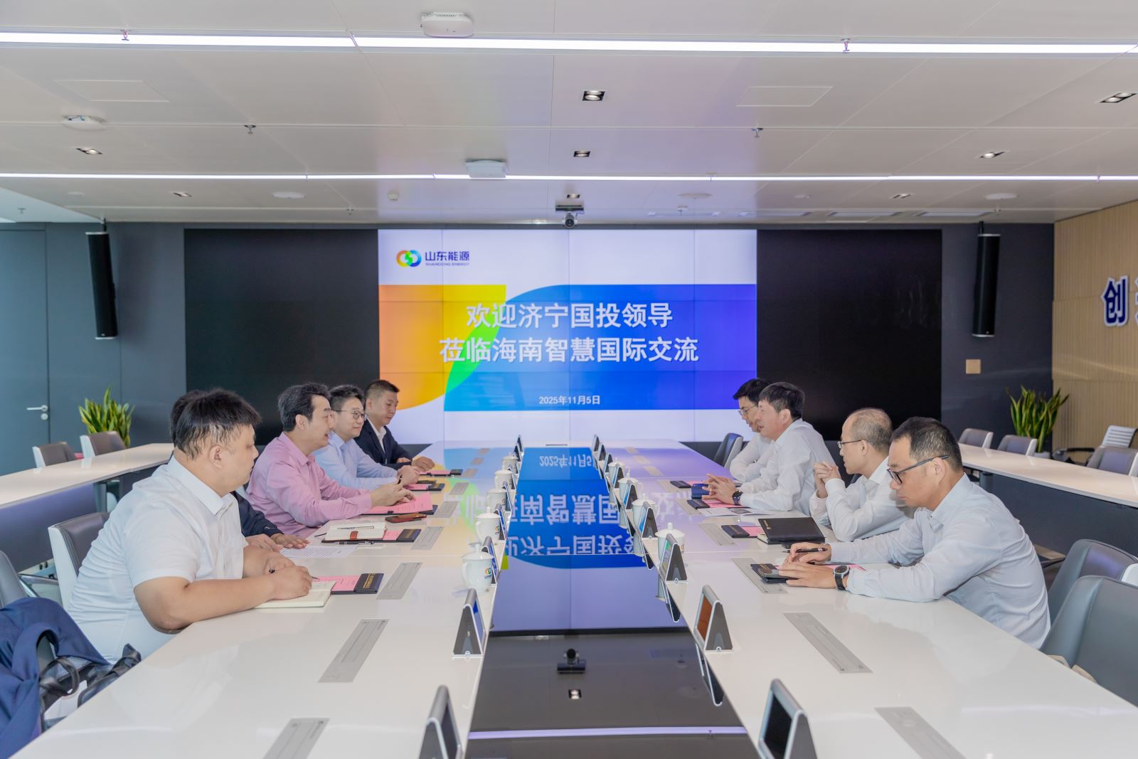 在山东能源(海南)智慧国际科技发展有限公司,虢洪增一行与该公司总经理刘光进交流座谈。刘光进全面介绍了山能智慧国际的产业发展、“十五五”期间重点发展目标以及海口江东新区“总部经济区”的战略规划与发展前景。虢洪增详细介绍了亚新平台_亚新(中国)一站式服务官方网站在金融投资、现代贸易等领域的产业优势和发展成就,对山能智慧国际在智慧能源领域的技术创新和市场拓展成果表示高度赞赏。双方围绕能源贸易协同、跨境业务合作等方面达成初步合作意向,一致表示将建立常态化沟通机制,加强与山能智慧国际及海南能源交易中心的深度合作,共同为海南自贸港能源产业高质量发展贡献力量。同时,进一步拓展合作空间、深化合作内容,对康养项目融合方面探索多元化合作模式、拓宽合作边界,为后续务实合作达成多项共识。